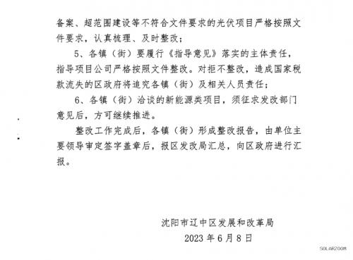 4、各鎮(zhèn)(街)對企業(yè)“化整為零”以自然人身份申請備案、超范圍建設(shè)等不符合文件要求的光伏項目嚴格按照文件要求,認真梳理、及時整改;