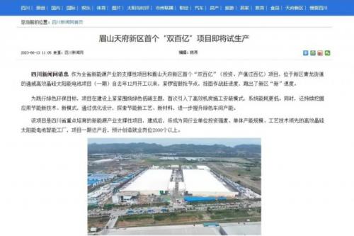 報道指出,作為全省新能源產(chǎn)業(yè)的支撐性項目和眉山天府新區(qū)首個“雙百億”(投資、產(chǎn)值過百億)項目,位于新區(qū)青龍街道的通威高效晶硅太陽能電池項目(一期)自去年12月開工以來,緊鑼密鼓搶節(jié)點,掛圖作戰(zhàn)趕進(jìn)度,跑出了新區(qū)“新”速度。該項目是四川省重點培育的新能源產(chǎn)業(yè)支撐性項目,建成后,將成為同行業(yè)工藝技術(shù)領(lǐng)先的高效晶硅太陽能電池智能工廠,項目一期達(dá)產(chǎn)后,預(yù)計創(chuàng)造就業(yè)崗位2000個以上。