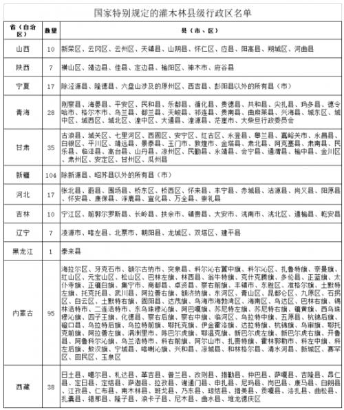 事實(shí)上,在今年4月自然資源部、國(guó)家林業(yè)和草原局聯(lián)合印發(fā)的《關(guān)于以第三次全國(guó)國(guó)土調(diào)查成果為基礎(chǔ)明確林地管理邊界規(guī)范林地管理的通知》中已經(jīng)明確表示,灌木林標(biāo)準(zhǔn)是指分布在年均降水量400毫米以下的極干旱、干旱、半干旱地區(qū),不包括喬木分布(垂直分布)上限以上地域的灌木林,并給出了涉及的縣級(jí)行政區(qū)名單。