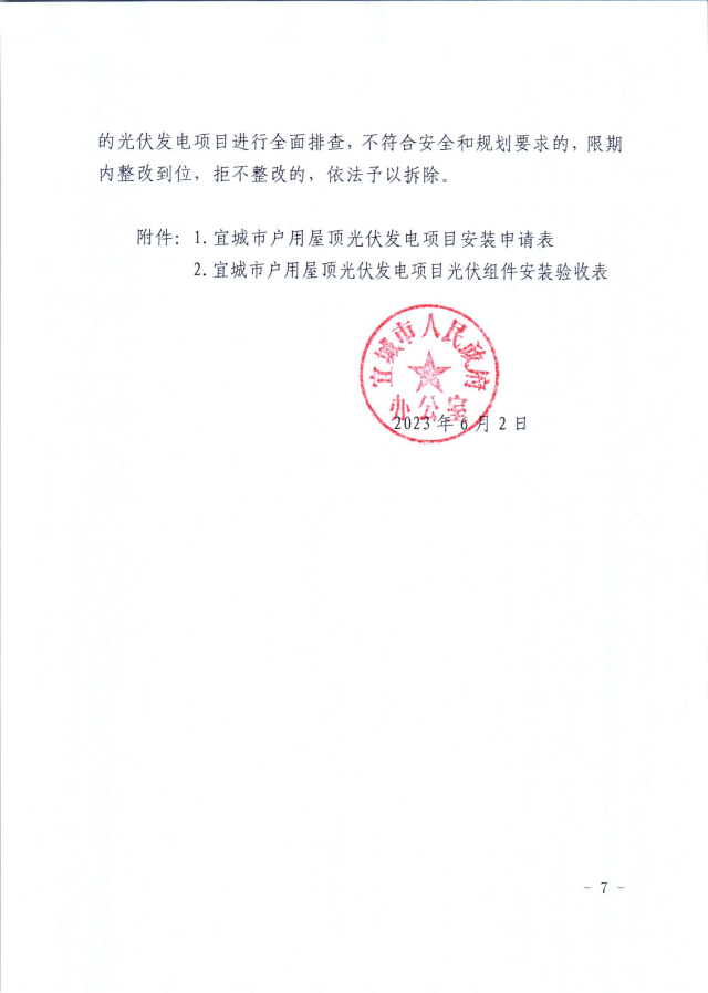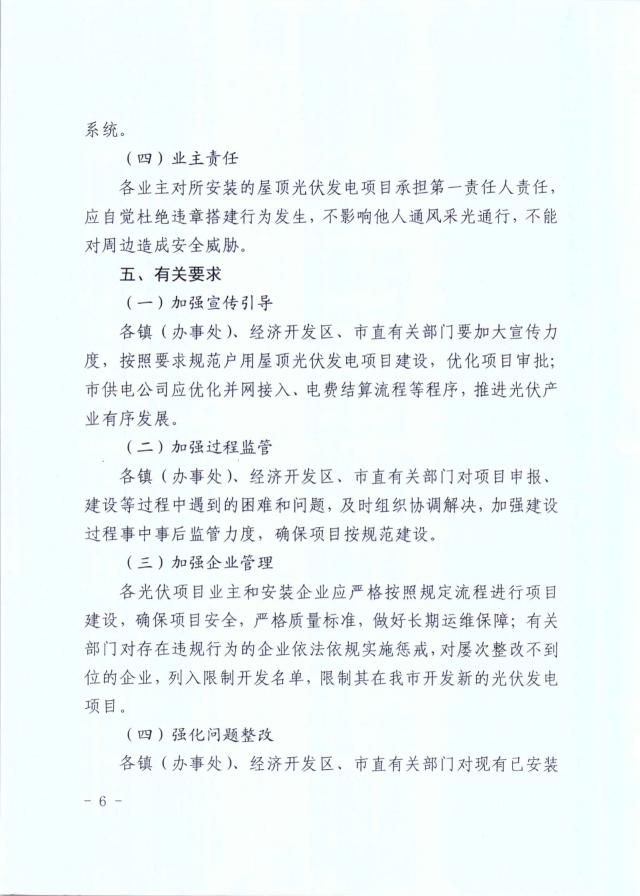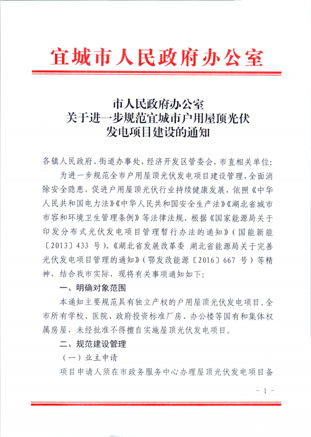 近日,湖北宜城發(fā)布《關(guān)于進一步規(guī)范宜城市戶用屋頂光伏發(fā)電項目建設(shè)的通知》,明確指出全市所有學(xué)校、醫(yī)院、政府投資標(biāo)準(zhǔn)廠房、辦公樓等國有和集體權(quán)屬房屋,未經(jīng)批準(zhǔn)不得擅自實施屋頂光伏發(fā)電項目,而戶用光伏項目并網(wǎng)需要8個部門的簽字。