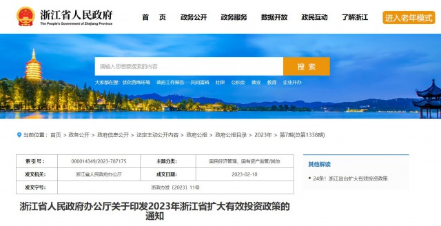 2023年浙江省擴(kuò)大有效投資政策