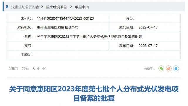 關(guān)于同意惠陽區(qū)2023年度第七批個(gè)人分布式光伏發(fā)電項(xiàng)目備案的批復(fù)