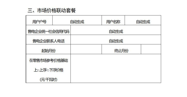 (六)售電公司應(yīng)在零售套餐中約定向零售用戶售電的期限,包括起始月份和終止月份。零售套餐按自然月生效,原則上起始月份不早于次月,終止月份不晚于起始月份當年12月。