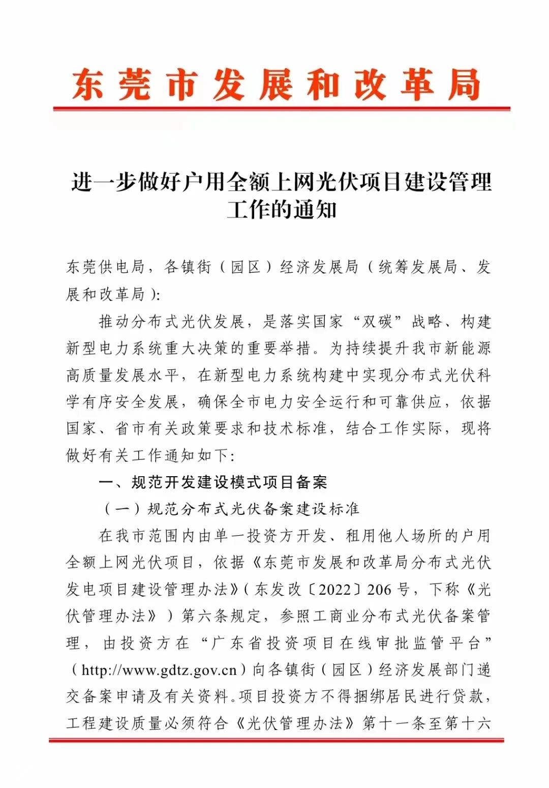 近日,東莞市發(fā)展和改革局下發(fā)了關(guān)于《進(jìn)一步做好戶用全額上網(wǎng)光伏項日建設(shè)管理工作的通知》