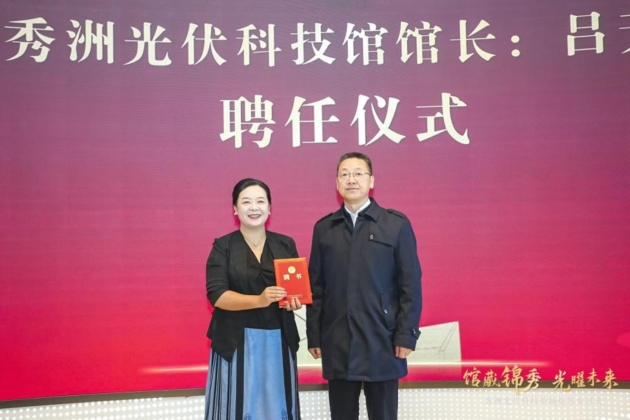 秀洲區(qū)委書記徐鳴陽宣布秀洲光伏科技館正式開館,并聘任中國綠色供應(yīng)鏈聯(lián)盟光伏專委會秘書長呂芳為館長。