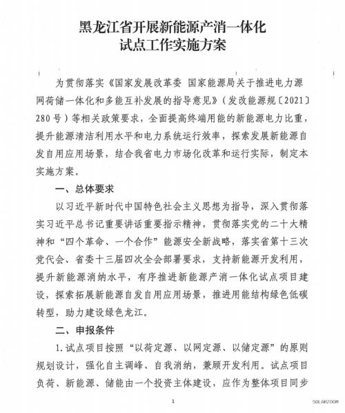 12月13日,黑龍江省發(fā)改委印發(fā)《黑龍江省開展新能源產(chǎn)消一體化試點工作實施方案》,《方案》明確,試點項目負荷應為新增負荷,即未向電網(wǎng)企業(yè)報裝的負荷,且新增負荷項目符合國家和省相關產(chǎn)業(yè)政策。原則上新增負荷容量應不低于50兆瓦、年用電量不低于1億千瓦時。