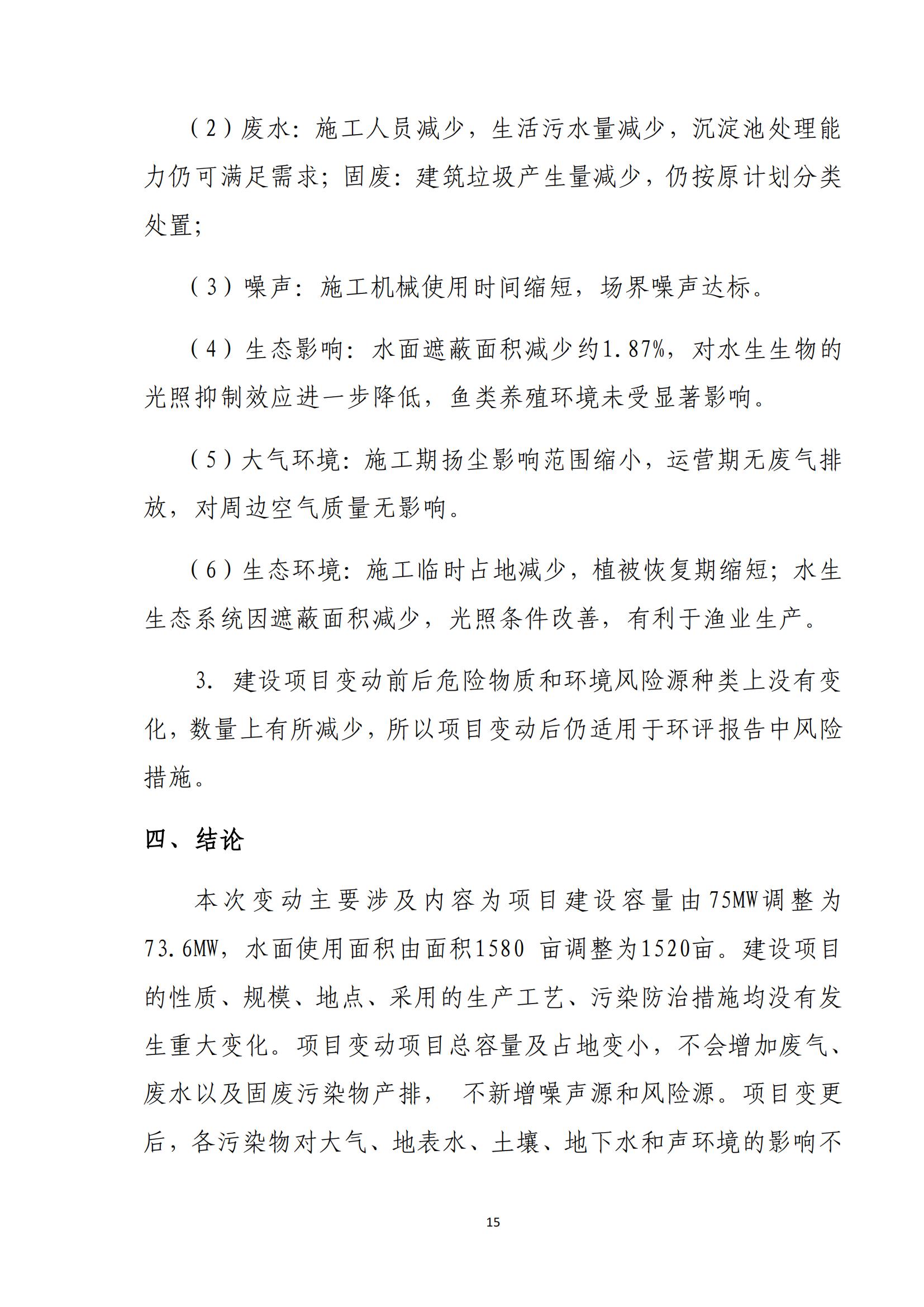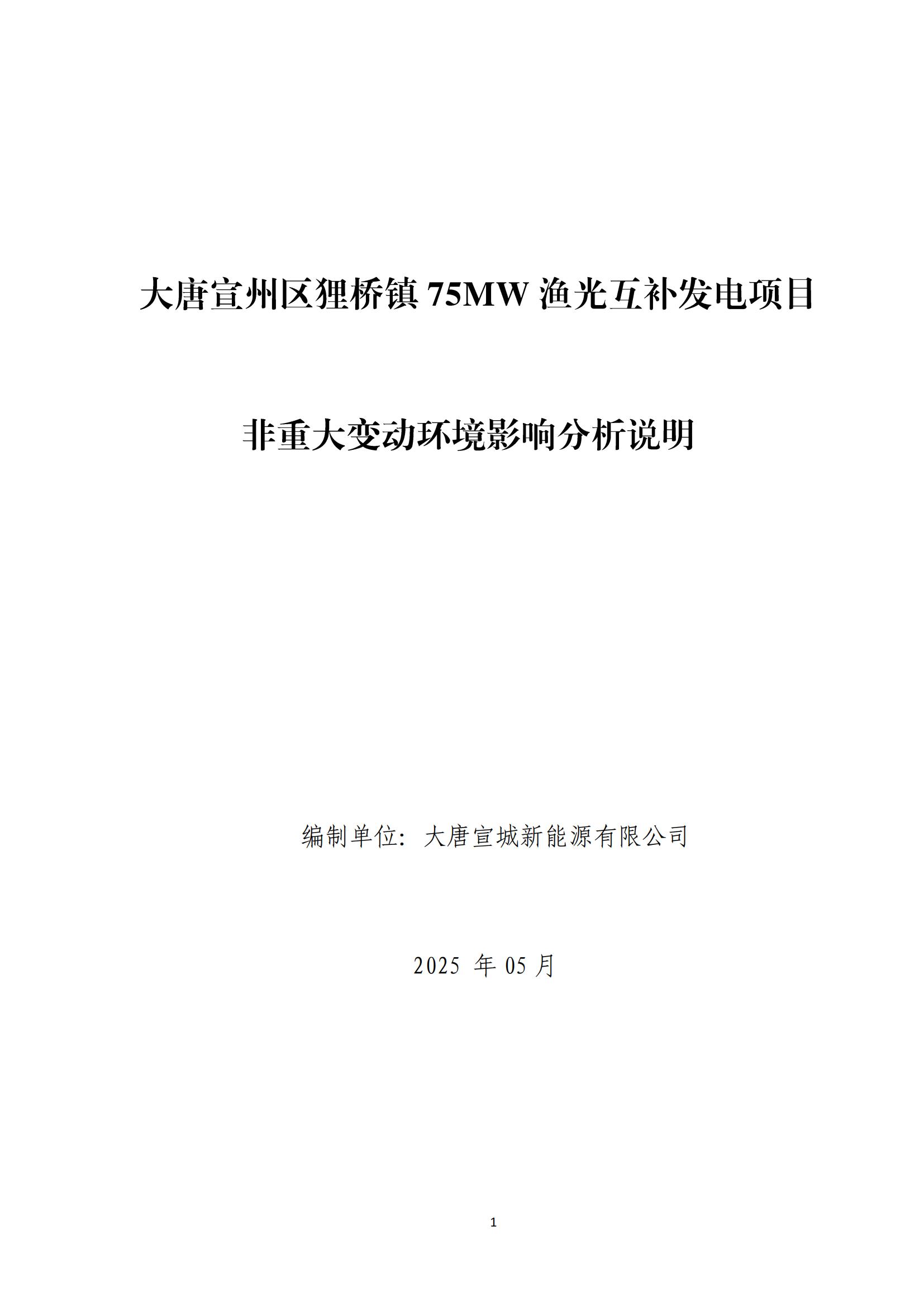 大唐宣州區(qū)貍橋鎮(zhèn)75MW漁光互補發(fā)電項目非重大變動環(huán)境影響分析說明