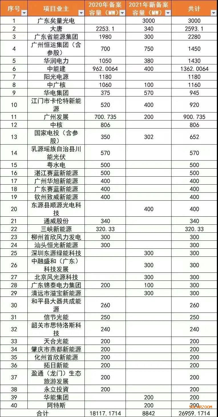 值得一提的還有華潤電力,據(jù)光伏們統(tǒng)計,2020年華潤已于2020年于廣東、湖北、山東等地共備案超4GW規(guī)模,在“十四五”規(guī)劃中,華潤電力計劃未來五年投建40GW的風(fēng)電、光伏項目,其在新能源方面的雄心可見一斑。