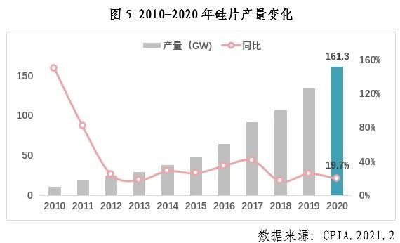 (二)產(chǎn)業(yè)規(guī)模持續(xù)擴(kuò)大盡管受到年初的疫情沖擊、7-8月多晶硅料企業(yè)安全事故及新疆地區(qū)疫情導(dǎo)致的硅料供應(yīng)緊張、以及7月開始由于光伏玻璃、EVA膠膜等供應(yīng)緊張導(dǎo)致的原輔材料價(jià)格上漲等黑天鵝事件,我國(guó)光伏產(chǎn)業(yè)在國(guó)內(nèi)外市場(chǎng)的推動(dòng)下,規(guī)模持續(xù)擴(kuò)大。其中,多晶硅產(chǎn)量39.2萬噸,同比增長(zhǎng)14.6%;硅片產(chǎn)量161.3GW,同比增長(zhǎng)19.7%;電池片產(chǎn)量134.8GW,同比增長(zhǎng)22.2%;組件產(chǎn)量124.6GW,同比增長(zhǎng)26.4%。