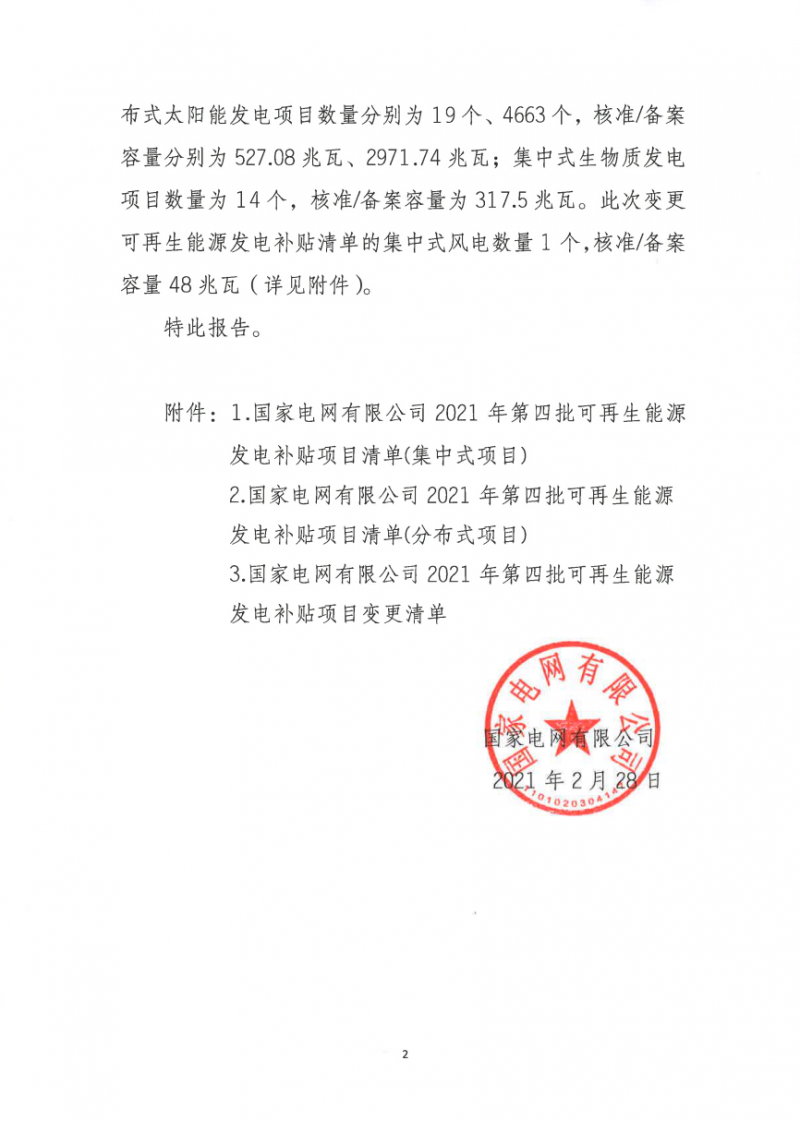 2020年2月28日,國網(wǎng)公布2021年第四批可再生能源發(fā)電補(bǔ)貼項(xiàng)目清單。