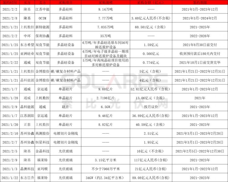 在充分發(fā)揮各自產(chǎn)業(yè)競爭優(yōu)勢的同時(shí),越來越多的企業(yè)開始“強(qiáng)強(qiáng)聯(lián)合”,通過優(yōu)勢互補(bǔ),優(yōu)化資源配置來達(dá)到降低生產(chǎn)成本、擴(kuò)大市場占有額,獲取更大經(jīng)濟(jì)效益的目的。2月9日,通威和晶科能源簽訂戰(zhàn)略合作協(xié)議,雙方就共同投資年產(chǎn)4.5萬噸高純晶硅項(xiàng)目、年產(chǎn)15GW硅片項(xiàng)目以及開展相應(yīng)供應(yīng)鏈合作達(dá)成共識(shí)。