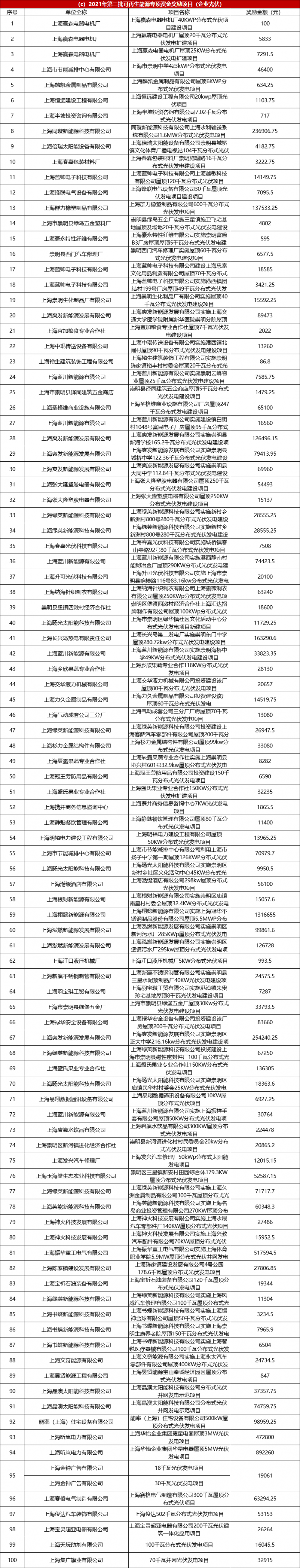上海市2021年度第二批可再生能源專項(xiàng)資金撥付計(jì)劃(草案)公示