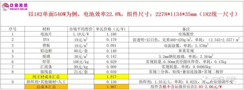 太多的分析在如今的大環(huán)境下顯得很蒼白,故小編制作了組件價格拆分表供大家參考,如下: