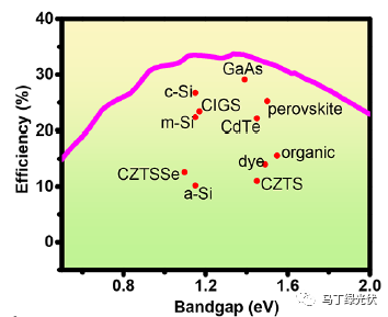 4.像鈣鈦礦、碲化鎘、銅銦鎵硒這類的材料,能帶寬度大于晶體硅電池,能夠用于制備晶體硅疊層電池,拓寬光譜的利用率,進(jìn)一步提高太陽能電池的理論效率。