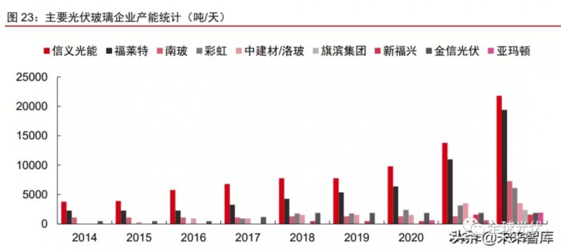 2021/2022年光伏玻璃開(kāi)啟集中擴(kuò)產(chǎn)潮,行業(yè)產(chǎn)能增量明顯。根據(jù)主要光伏玻璃廠(chǎng)商建設(shè)規(guī)劃,我們測(cè)算2021/2022年光伏玻璃行業(yè)新增日熔量或分別達(dá)1.9和2.5萬(wàn)噸/天,產(chǎn)能進(jìn)入集中投放期。其中,2022年除了信義光能和福萊特兩家頭部廠(chǎng)商有近1.5萬(wàn)噸/天新產(chǎn)能陸續(xù)投放外,還包括南玻、彩虹、淇濱等二線(xiàn)企業(yè)和新進(jìn)入者大舉擴(kuò)產(chǎn)??紤]到新產(chǎn)線(xiàn)從點(diǎn)火到穩(wěn)定出貨一般需經(jīng)歷3-4個(gè)月爬坡期,尤其是新進(jìn)入者爬坡期可能更長(zhǎng),實(shí)際產(chǎn)出增量將打折扣,預(yù)計(jì)2021/22年行業(yè)有效日熔量增量約為1.4/2萬(wàn)噸,整體增幅仍然較大。