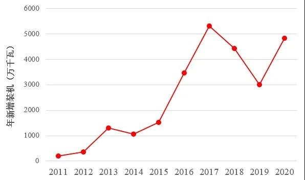 圖:國內(nèi)近10年光伏年新增裝機(jī)規(guī)模