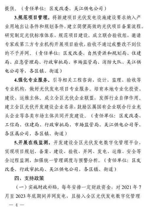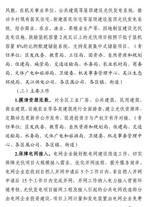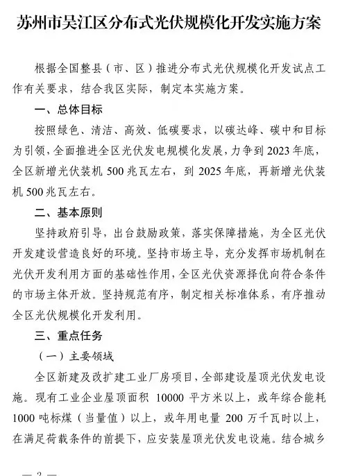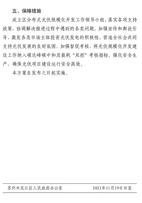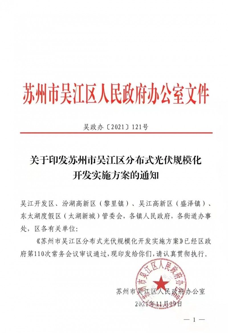 蘇州市吳江區(qū)人民政府發(fā)布印發(fā)吳江區(qū)分布式光伏規(guī)模化開(kāi)發(fā)實(shí)施方案的通知。