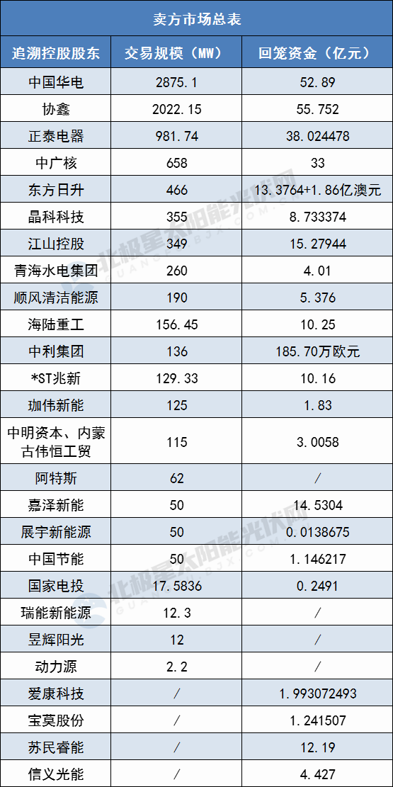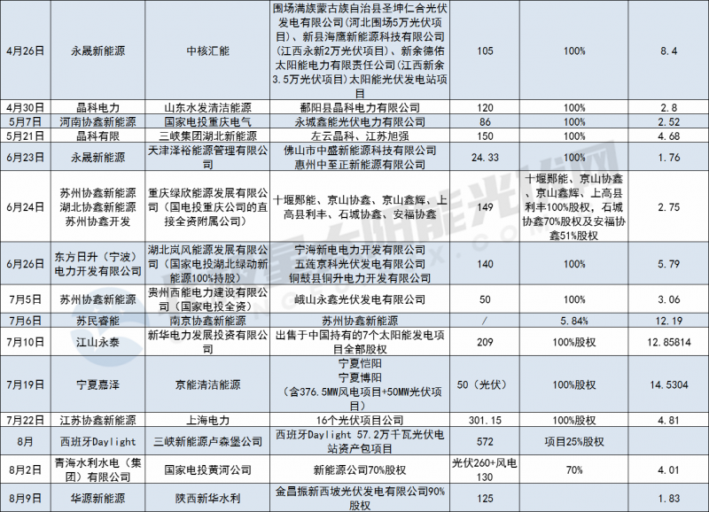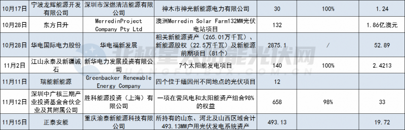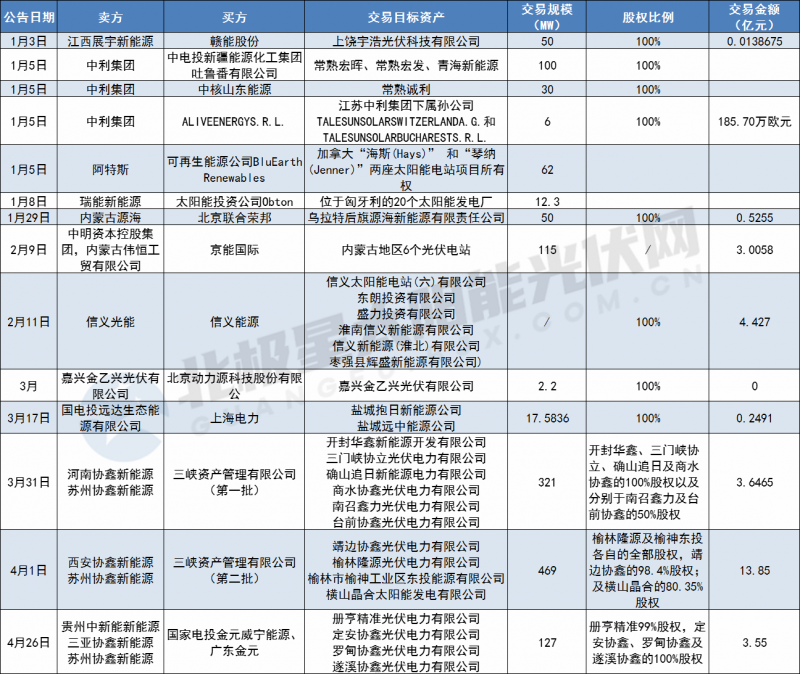 2021年初至今光伏電站交易詳情如下:
