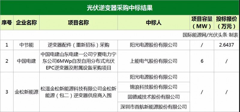 逆變器中標(biāo)項(xiàng)目有3個,分別是: