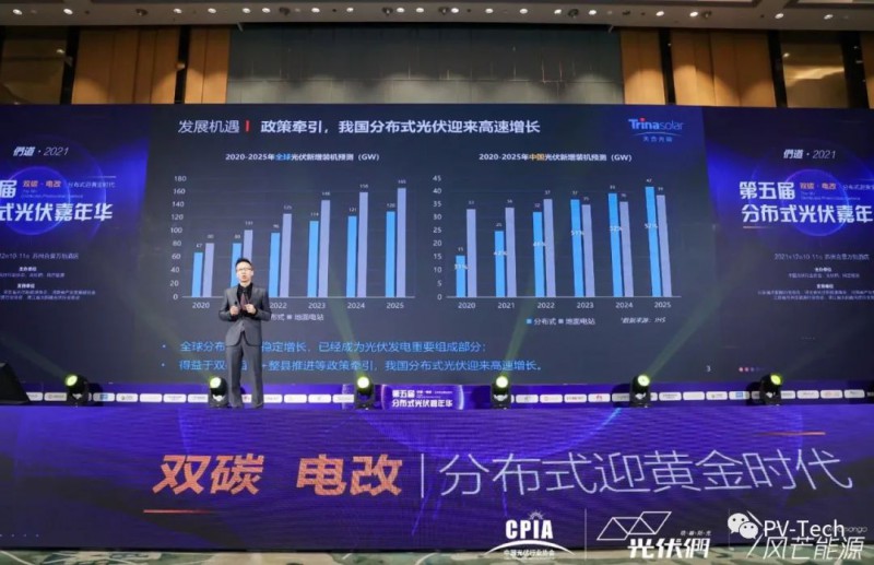 此外,當(dāng)天,天合光能正式發(fā)布至尊600W+分布式解決方案,天合光能張映斌博士在演講中深度剖析了以600W+為代表的超高功率組件對(duì)于分布式應(yīng)用場(chǎng)景的顯著價(jià)值及影響——分布式解決方案將推動(dòng)光伏產(chǎn)業(yè)快速升級(jí),提高分布式光伏組件功率、系統(tǒng)效率,降低分布式光伏度電成本。高端對(duì)話環(huán)節(jié),還討論了分布式光伏的發(fā)展趨勢(shì)和市場(chǎng)格局