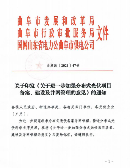 關(guān)于進一步加強分布式光伏項目備案、建設(shè) 及并網(wǎng)管理的意見