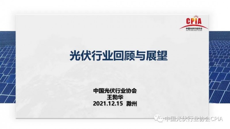 2021年12月15日,“2021中國光伏行業(yè)年度大會暨(滁州)光伏創(chuàng)新發(fā)展高峰論壇”在滁州港匯喜來登酒店隆重舉行。會上,中國光伏行業(yè)協(xié)會名譽(yù)理事長王勃華做中國光伏行業(yè)的發(fā)展機(jī)遇與挑戰(zhàn)分析。