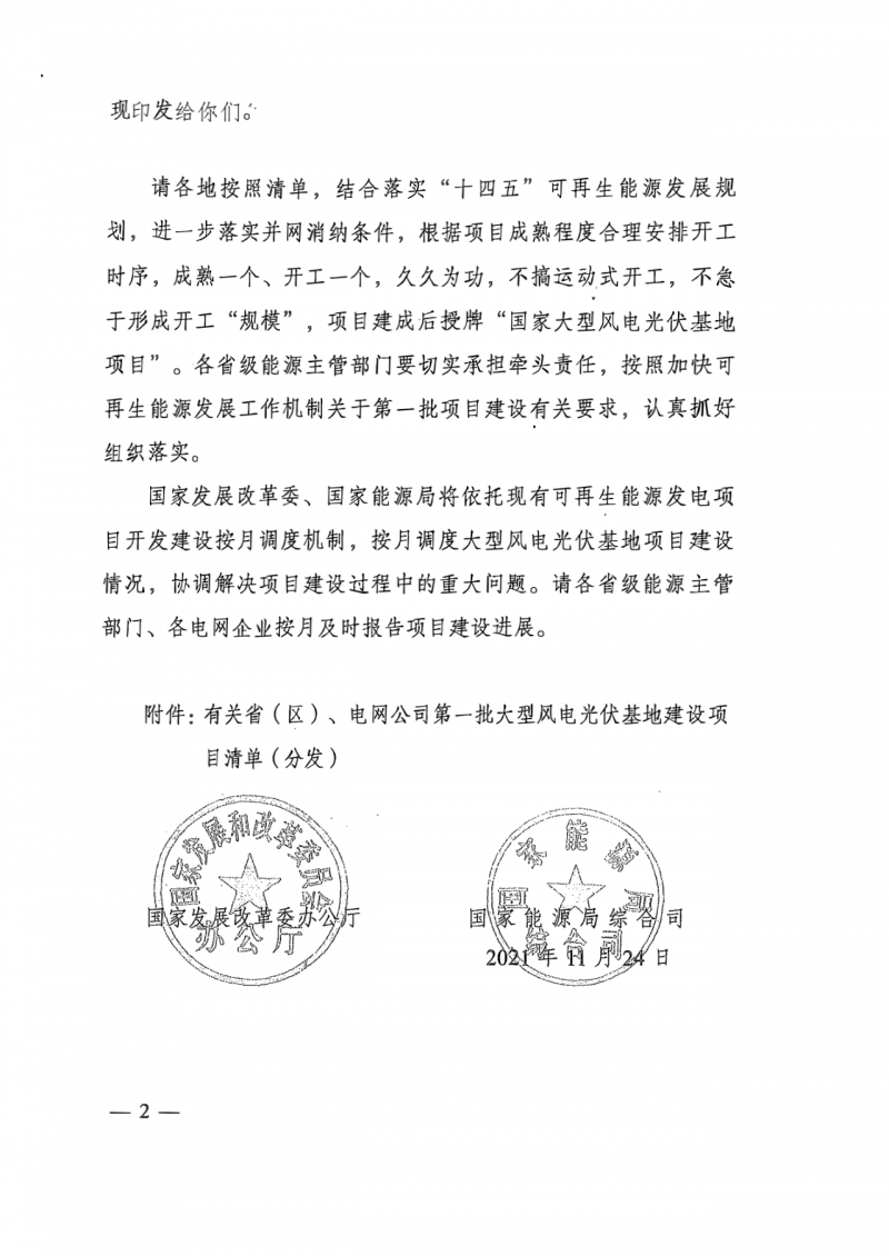 根據(jù)文件,請各地按照清單,結(jié)合落實“十四五”可再生能源發(fā)展規(guī)劃,進一步落實并網(wǎng)消納條件,根據(jù)項目成熟程度合理安排開工時序,成熟一個、開工一個,久久為功,不搞運動式開工,不急于形成開工“規(guī)模”,項目建成后授牌“國家大型風電光伏基地項目”。各省級能源主管部門要切實承擔牽頭責任,按照加快可再生能源發(fā)展工作機制關(guān)于第一批項目建設有關(guān)要求,認真抓好組織落實。