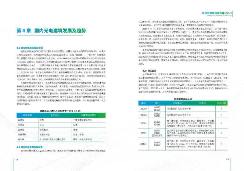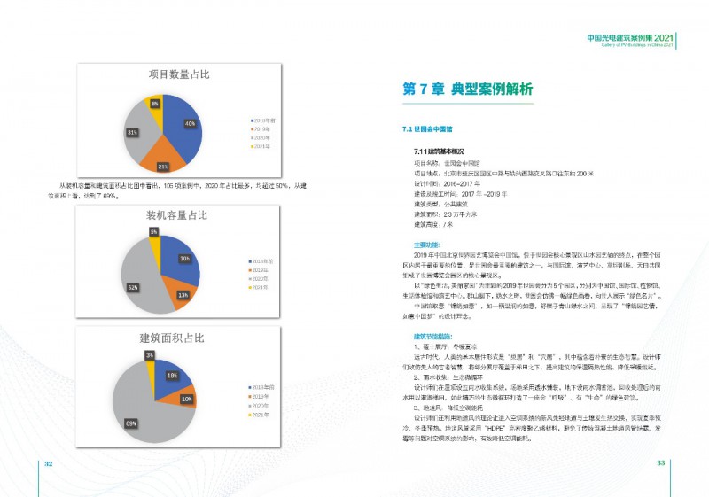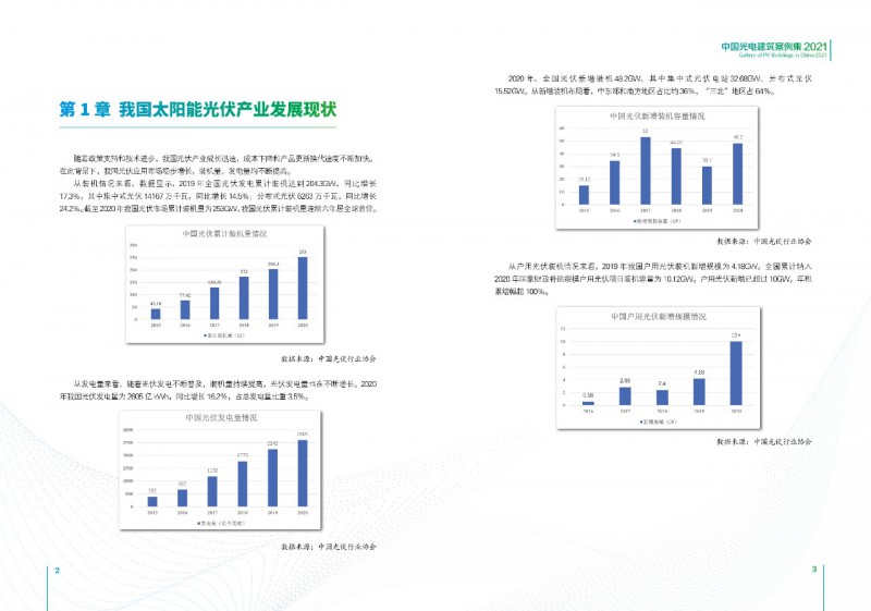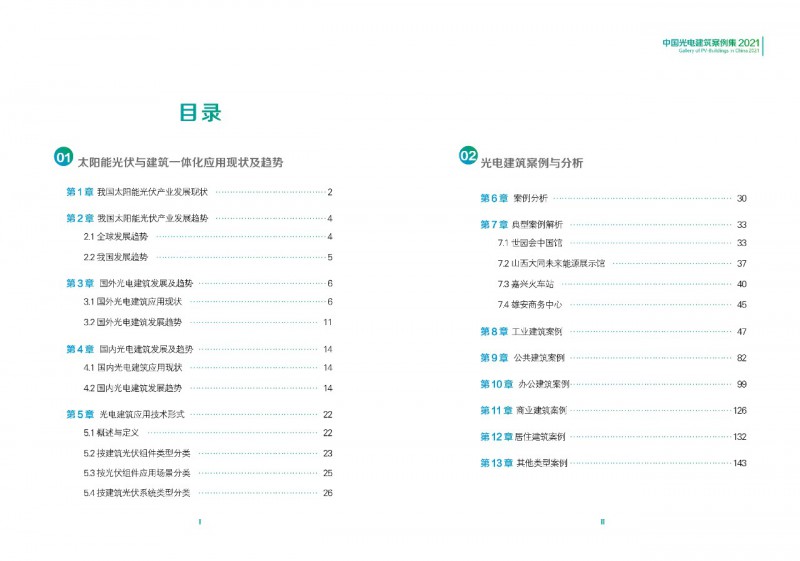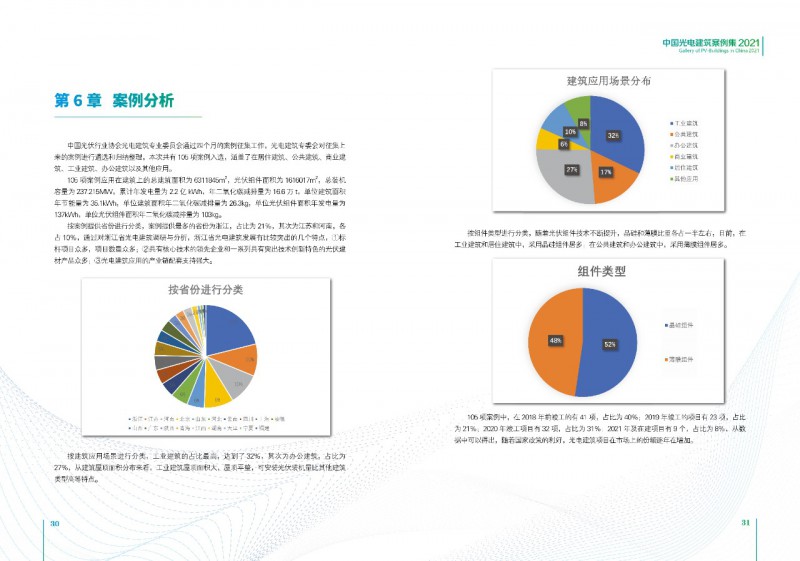 《案例集》分析和總結(jié)我國(guó)光電建筑應(yīng)用現(xiàn)狀、國(guó)內(nèi)外發(fā)展趨勢(shì)、技術(shù)要點(diǎn)等內(nèi)容,為行業(yè)發(fā)展提供基礎(chǔ)數(shù)據(jù)。經(jīng)過(guò)案例篩選,共收錄了105項(xiàng)光電建筑典型案例,涵蓋了我國(guó)工業(yè)建筑、公共建筑、辦公建筑、商業(yè)建筑、居住建筑及其他建筑類(lèi)型光伏應(yīng)用,為光伏在建筑上大規(guī)模應(yīng)用提供了依據(jù)和參考價(jià)值。