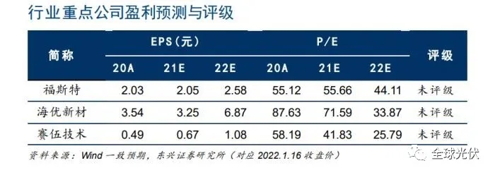 東興證券認(rèn)為,展望2022年,膠膜的年化產(chǎn)能遠(yuǎn)低于硅片、電池片等其他環(huán)節(jié),膠膜銷售價格有望持續(xù)堅挺。隨著上游原材料供應(yīng)瓶頸得到緩解,成本端壓力有望得到釋放。膠膜行業(yè)的議價能力和盈利能力均有望在22年迎來拐點(diǎn)。長遠(yuǎn)來看,膠膜作為光伏組件的關(guān)鍵輔材之一,市場規(guī)模將持續(xù)擴(kuò)容,產(chǎn)品結(jié)構(gòu)將持續(xù)優(yōu)化,二線企業(yè)將迎來競爭洗牌的突圍機(jī)遇期。