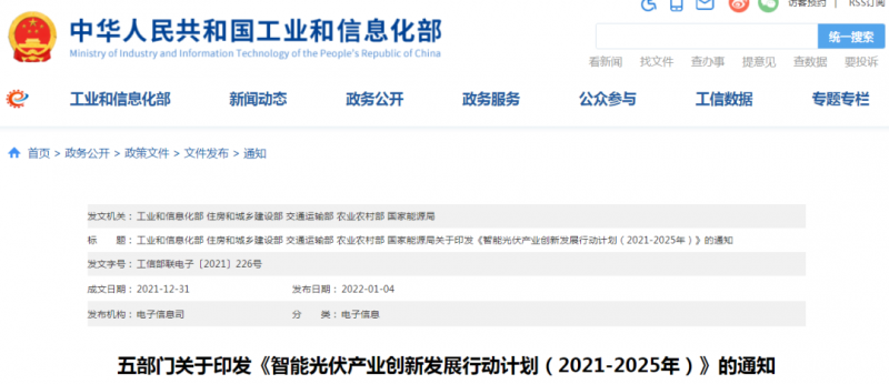 2022年1月4日,工信部等五部門聯(lián)合印發(fā)《智能光伏產(chǎn)業(yè)創(chuàng)新發(fā)展行動計劃(2021-2025年)》,其中的主要任務(wù)就包括助力“智能光伏交通”在內(nèi)的各領(lǐng)域碳達峰碳中和。加快“光伏+交通”等融合發(fā)展項目推廣應(yīng)用,推動交通領(lǐng)域光伏電站及充電樁示范建設(shè)。堅持充分論證、因地制宜、試點先行的原則,鼓勵光伏發(fā)電在公路服務(wù)區(qū)(停車場)、加油站、公路邊坡、公路隧道、公交貨運場站、港口碼頭、航標等導(dǎo)助航設(shè)施、碼頭躉船、海島工作站點等領(lǐng)域的應(yīng)用。