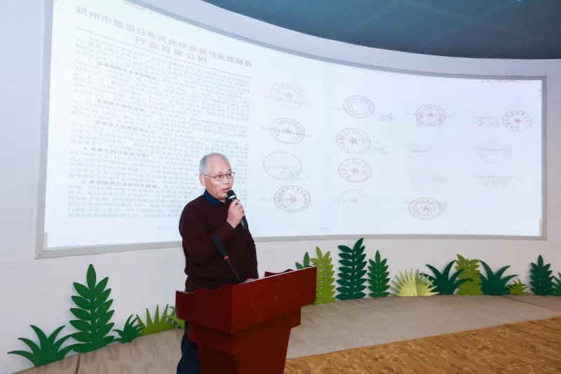 2022年1月18日,全國(guó)首個(gè)整縣推進(jìn)模式下的行業(yè)自律公約《杭州市屋頂分布式光伏安裝與運(yùn)維服務(wù)行業(yè)自律公約》,由協(xié)會(huì)副會(huì)長(zhǎng)、標(biāo)技委副主任郭衛(wèi)東在杭州低碳科技館召開(kāi)的“一心一意助力零碳 共創(chuàng)共享前行攻關(guān)”主題論壇上正式發(fā)布。