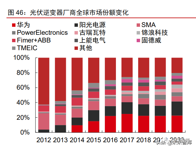 受益于光伏建筑市場擴大+安全高效要求提升,組件級控制有望成為下一代逆變器主 流方向。受戶用等屋頂分布式裝機占比提升驅(qū)動,以微型逆變器為代表的組件級電力電子 變換產(chǎn)品接受度不斷提高,且相關(guān)強制措施有望進一步推進微型逆變器市場增長。美國國 家防火協(xié)會 2017 年在 NEC 規(guī)范中強制性要求光伏建筑發(fā)電系統(tǒng)達到組件級關(guān)斷的要求, 推動美國分布式市場 MLPE 產(chǎn)品滲透率達 70%以上,另有德國、澳大利亞等多個國家逐 步立法推進光伏建筑的組件級關(guān)斷要求,而國內(nèi)“整縣推進”、BIPV 等光伏項目快速落地 也提高了光伏系統(tǒng)的安全要求的必要性,相關(guān)安全標準呼之欲出。隨著政府、行業(yè)組織及 戶主對安全性重視程度加深,行業(yè)正在由組串式逆變器向組件級別控制的逆變器轉(zhuǎn)變,組 件級控制有望成為下一代逆變器的主流方向之一。