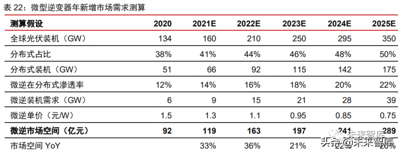 微逆市場有望迎來高增長,未來 5 年市場空間 CAGR 或超 25%,優(yōu)質(zhì)廠商有望持續(xù) 高成長。在全球屋頂分布式光伏市場裝機占比提升,以及安全性要求持續(xù)提升的推動下, 隨著微型逆變器產(chǎn)品性價比持續(xù)優(yōu)化,滲透率有望迎來快速提升??紤]到微逆價格和成本 有望持續(xù)下降,我們預(yù)計 2025 年微型逆變器市場空間或達 290 億元,對應(yīng) CAGR 超 25%, 具備產(chǎn)品性能和成本優(yōu)勢的國內(nèi)逆變器龍頭企業(yè)具備強勁的市場競爭能力和巨大的全球 替代空間。
