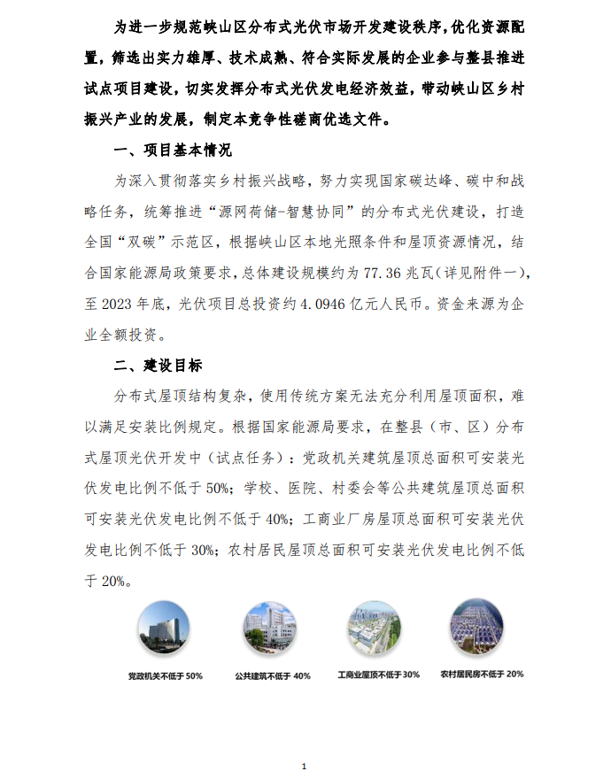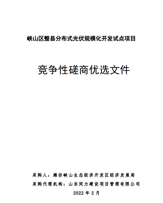 峽山區(qū)整縣分布式光伏規(guī)模化開發(fā)試點(diǎn)項(xiàng)目競爭性磋商二次公告