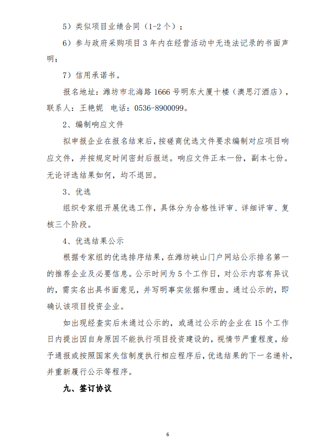 1、參與磋商的企業(yè)營業(yè)執(zhí)照登記范圍應(yīng)包含新能源電力開發(fā)、建設(shè)、運(yùn)營等相關(guān)內(nèi)容,并保證有一定的類似項(xiàng)目業(yè)績(1-2個(gè))。