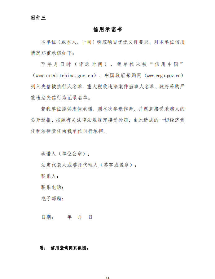 6、參與磋商的企業(yè)未被列入“信用中國”網(wǎng)站(www.creditchina.gov.cn)記錄失信被執(zhí)行人或“重大稅收違法案件當(dāng)事人名單或企業(yè)經(jīng)營異常名錄”記錄名單;不處于中國政府采購網(wǎng)(www.ccgp.gov.cn)政府采購嚴(yán)重違法失信行為信息記錄”中的禁止參加政府采購活動期間;(詳見附件,以上資料查詢時(shí)間以本項(xiàng)目磋商優(yōu)選文件發(fā)布至截止時(shí)間前為準(zhǔn),如相關(guān)失信記錄已失效,參與企業(yè)需提供相關(guān)證明資料)。