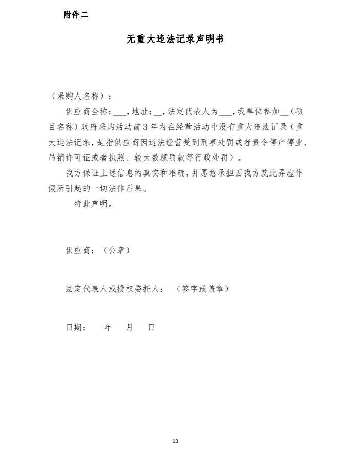 5、參與磋商的企業(yè)在參與政府采購項(xiàng)目3年內(nèi)在經(jīng)營活動中無違法記錄的書面聲明(詳見附件)。