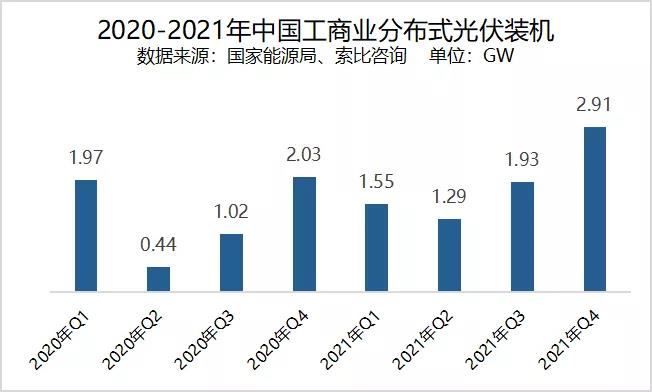 與此同時,下半年以來,在中央“能耗雙控”政策、電價政策的共同推動下,工商業(yè)分布式光伏也取得歷史最好成績,全年新增裝機7.68GW,其中四季度新增裝機近3GW。