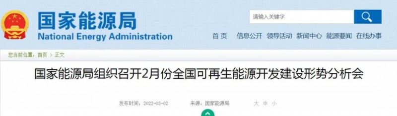 會議圍繞研究促進2022年風(fēng)電光伏開發(fā)建設(shè),聽取了上次月度形勢分析會意見建議落實情況及全國可再生能源電力發(fā)展情況匯報,與會單位反映了大型風(fēng)電光伏基地項目并網(wǎng)和送出工程、林草地使用、項目核準(zhǔn)、選址調(diào)整、項目整合等問題,并提出了相關(guān)建議。2022年風(fēng)電光伏發(fā)展開局良好,1月份全國風(fēng)電光伏新增裝機超過1200萬千瓦,風(fēng)光電消納利用率保持在較高水平。