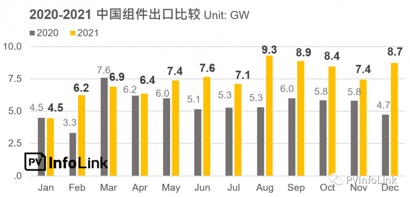 下半年進(jìn)入了傳統(tǒng)的市場旺季,但是受到產(chǎn)業(yè)上游的瓶頸,造成整體供應(yīng)鏈價(jià)格上升,以及中國的能耗政策影響,進(jìn)一步推升了組件的價(jià)格,高昂的海運(yùn)價(jià)格也增加了廠家的負(fù)擔(dān),終端在獲利考慮下需求暫緩,采取了包括延后發(fā)貨與重新議價(jià)等措施,導(dǎo)致了傳統(tǒng)旺季的下半年,中國組件出口卻呈現(xiàn)了下降的趨勢。