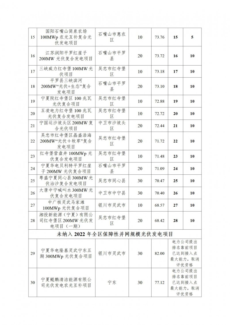 按照《自治區(qū)發(fā)展改革委關(guān)于2022年光伏發(fā)電項(xiàng)目申報(bào)有關(guān)事項(xiàng)的通知》(寧發(fā)改能源(發(fā)展)〔2022〕50號(hào)),經(jīng)過(guò)對(duì)項(xiàng)目用地及電網(wǎng)接入核查、專家評(píng)分、接入點(diǎn)超規(guī)模、合理核定項(xiàng)目容量等環(huán)節(jié),共28個(gè)404萬(wàn)千瓦項(xiàng)目納入2022年全區(qū)保障性并網(wǎng)規(guī)模。