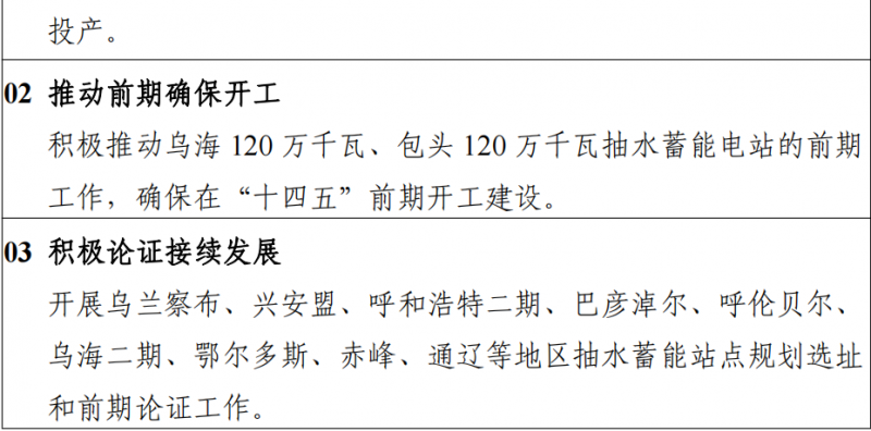1)加快推進(jìn)赤峰芝瑞 120 萬(wàn)千瓦抽水蓄能電站建設(shè),力爭(zhēng)早日建成投產(chǎn)。早日開(kāi)工烏海 120 萬(wàn)千瓦、包頭 120 萬(wàn)千瓦抽水蓄能電站, 確保在“十四五”前期開(kāi)工建設(shè)。2)力爭(zhēng)“十四五”期間新增并網(wǎng)太陽(yáng)能熱發(fā)電項(xiàng)目 50 萬(wàn)千瓦。3)原則上新建新能源項(xiàng)目要配置 15%(2 小時(shí))以上的新型儲(chǔ)能設(shè)施4)“十四五” 期間,規(guī)劃新增新能源外送基地 2900 萬(wàn)千瓦,力爭(zhēng)累計(jì)投產(chǎn) 3900 萬(wàn)千瓦。力爭(zhēng)2025 年前推動(dòng)開(kāi)工配套新能源基地 1000 萬(wàn)千瓦。具體如下。