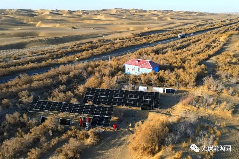 首條沙漠公路零碳示范工程投運后,每年可節(jié)約柴油1082.77噸,減少二氧化碳排放量約3410.73噸,消除噪音的同時,為守護水井房的綠化工人實現(xiàn)24小時照明,為推動塔里木油田綠色低碳發(fā)展奠定了基礎(chǔ)。