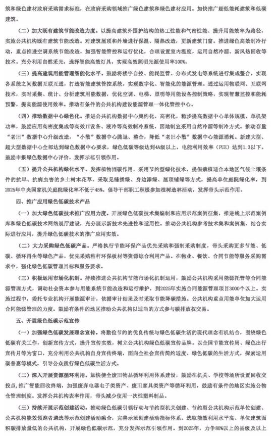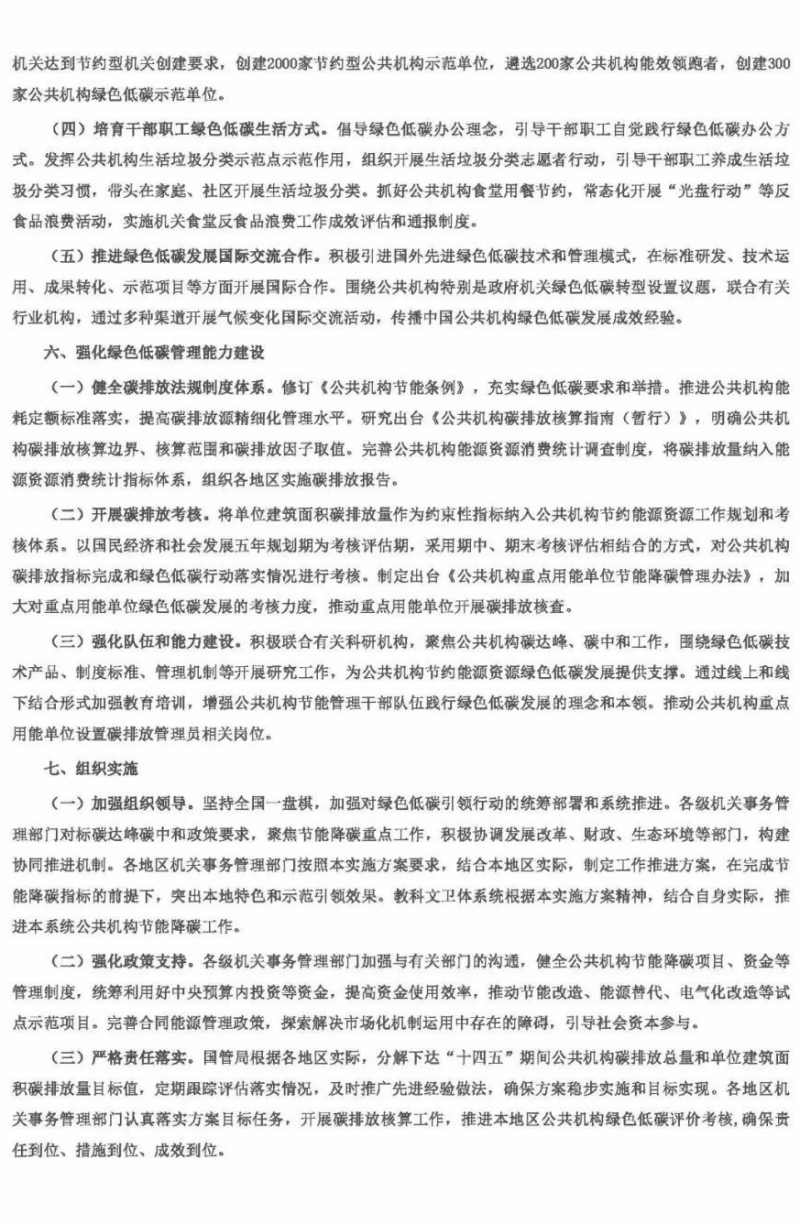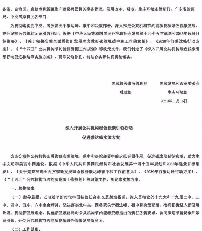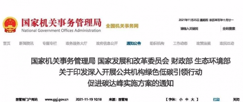 國家機(jī)關(guān)事務(wù)管理局、國家發(fā)改委、財(cái)政部、生態(tài)環(huán)境部發(fā)布關(guān)于印發(fā)深入開展公共機(jī)構(gòu)綠色低碳引領(lǐng)行動(dòng)、促進(jìn)碳達(dá)峰實(shí)施方案的通知。