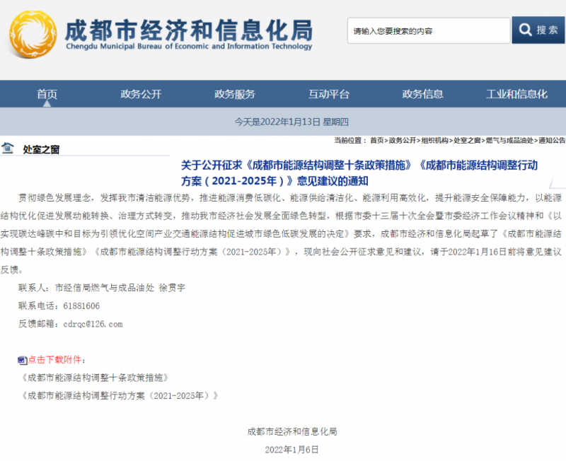 1月10日,成都市經(jīng)濟(jì)和信息化局發(fā)布關(guān)于公開征求《成都市能源結(jié)構(gòu)調(diào)整十條政策措施》《成都市能源結(jié)構(gòu)調(diào)整行動(dòng)方案(2021-2025年)》意見建議的通知。支持先進(jìn)儲能發(fā)展應(yīng)用。積極推進(jìn)電源、電網(wǎng)、用戶側(cè)配套建設(shè)儲能示范建設(shè),按儲能設(shè)施規(guī)模200元/千瓦給予補(bǔ)助。