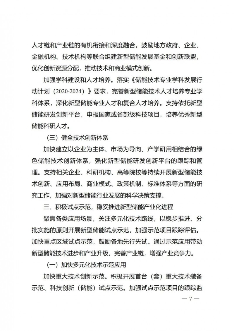 二是強(qiáng)化示范引領(lǐng)帶動(dòng)產(chǎn)業(yè)發(fā)展?!秾?shí)施方案》聚焦新型儲(chǔ)能多元化技術(shù)路線、不同時(shí)間尺度技術(shù)和各類應(yīng)用場(chǎng)景,以穩(wěn)步推進(jìn)、分批實(shí)施的原則推動(dòng)先進(jìn)儲(chǔ)能技術(shù)試點(diǎn)示范,加快首臺(tái)(套)重大技術(shù)裝備等重點(diǎn)技術(shù)的創(chuàng)新示范,以工程實(shí)踐加速技術(shù)迭代和更新,促進(jìn)成本下降;推動(dòng)重點(diǎn)區(qū)域開(kāi)展區(qū)域性儲(chǔ)能示范區(qū)建設(shè),結(jié)合應(yīng)用場(chǎng)景積極推動(dòng)制定差異化政策,在一些創(chuàng)新成果多、體制基礎(chǔ)好、改革走在前的地區(qū)實(shí)現(xiàn)重點(diǎn)突破。結(jié)合新型儲(chǔ)能處于商業(yè)化初期階段實(shí)際,《實(shí)施方案》鼓勵(lì)各地在新型儲(chǔ)能發(fā)展工作中,堅(jiān)持“示范先行”原則,避免“一刀切”上規(guī)模,積極開(kāi)展技術(shù)創(chuàng)新、健全市場(chǎng)體系和政策機(jī)制方面的試點(diǎn)示范。通過(guò)示范應(yīng)用帶動(dòng)技術(shù)進(jìn)步和產(chǎn)業(yè)升級(jí),推動(dòng)完善儲(chǔ)能上下游產(chǎn)業(yè)鏈條,支持儲(chǔ)能高新技術(shù)產(chǎn)業(yè)基地建設(shè)。