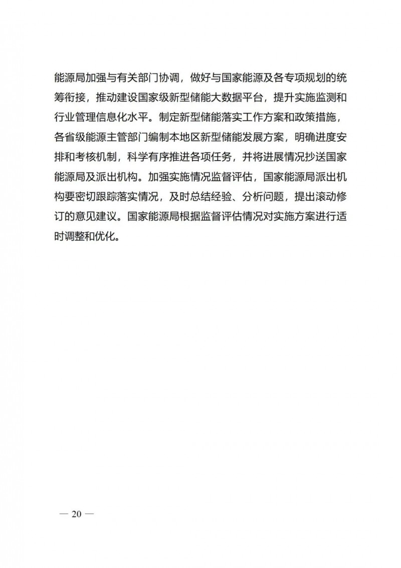 三)保障措施。為保障《實(shí)施方案》有效落地,提出系列具體保障措施。在協(xié)調(diào)保障方面,提出建立包含國(guó)家發(fā)展改革委、國(guó)家能源局與有關(guān)部門的多部門協(xié)調(diào)機(jī)制,做好與各項(xiàng)規(guī)模統(tǒng)籌銜接;在行業(yè)管理方面,提出建設(shè)國(guó)家級(jí)新型儲(chǔ)能大數(shù)據(jù)平臺(tái),開(kāi)展實(shí)施方案各項(xiàng)重點(diǎn)任務(wù)監(jiān)測(cè),提升行業(yè)管理信息化水平;在責(zé)任落實(shí)方面,要求各省級(jí)能源主管部門編制新型儲(chǔ)能發(fā)展方案,明確各項(xiàng)任務(wù)進(jìn)度和考核機(jī)制。同時(shí),國(guó)家能源局根據(jù)監(jiān)督評(píng)估情況,適時(shí)對(duì)實(shí)施方案進(jìn)行優(yōu)化調(diào)整。