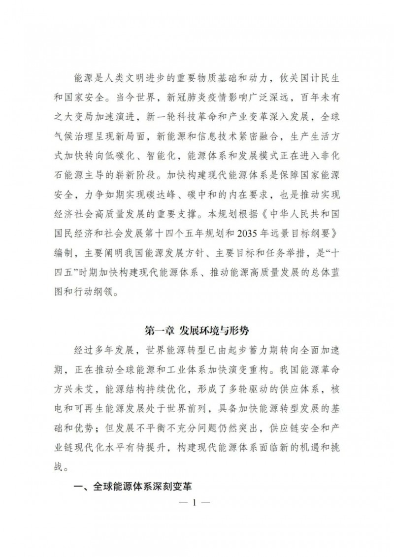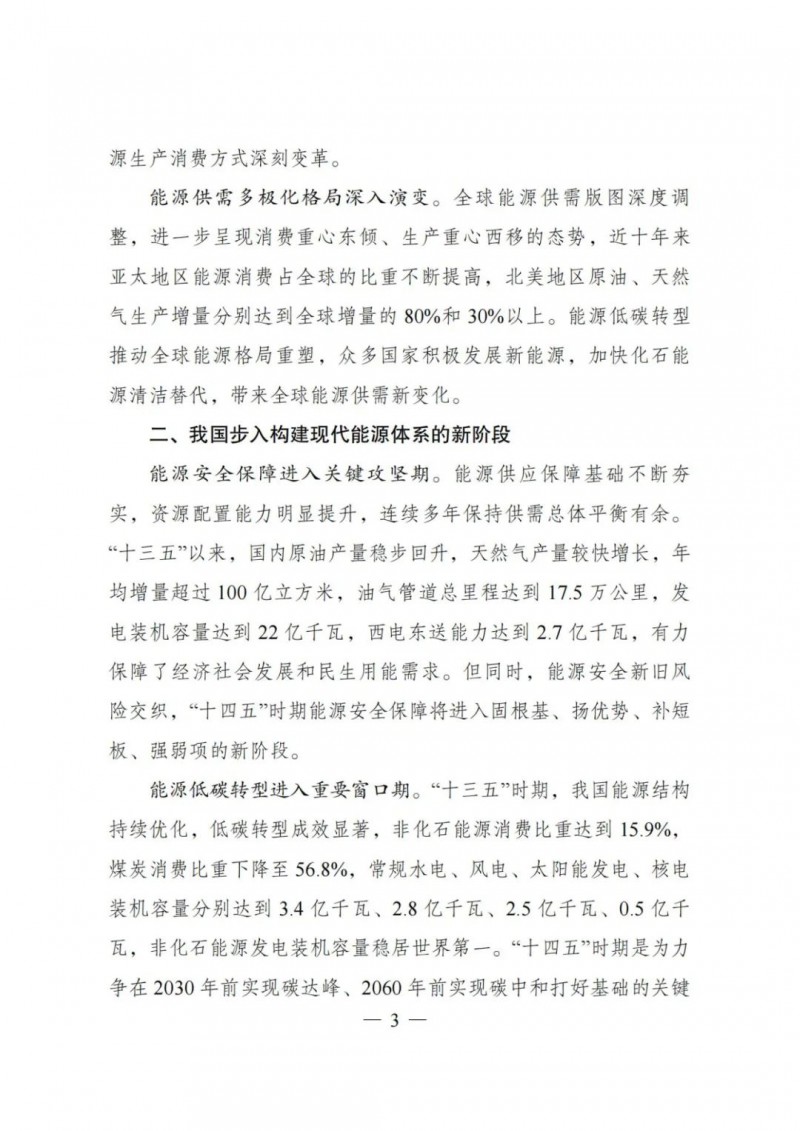 關于印發(fā)《“十四五”現(xiàn)代能源體系規(guī)劃》的通知