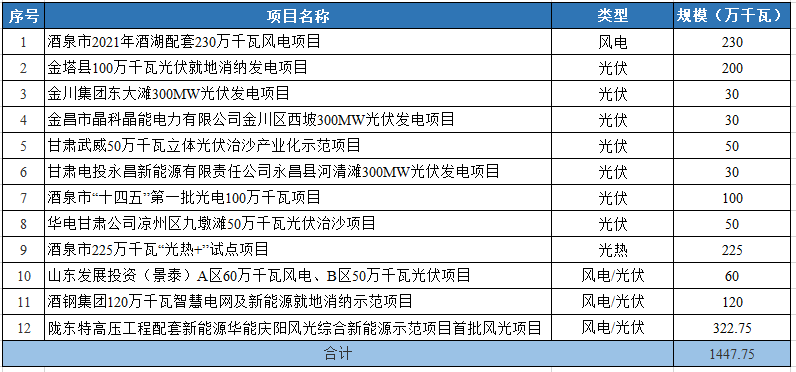 計劃新開工項目中,風電項目5個,規(guī)模2GW;光伏項目8個,規(guī)模2.95GW;風光項目1個,規(guī)模2.77GW。