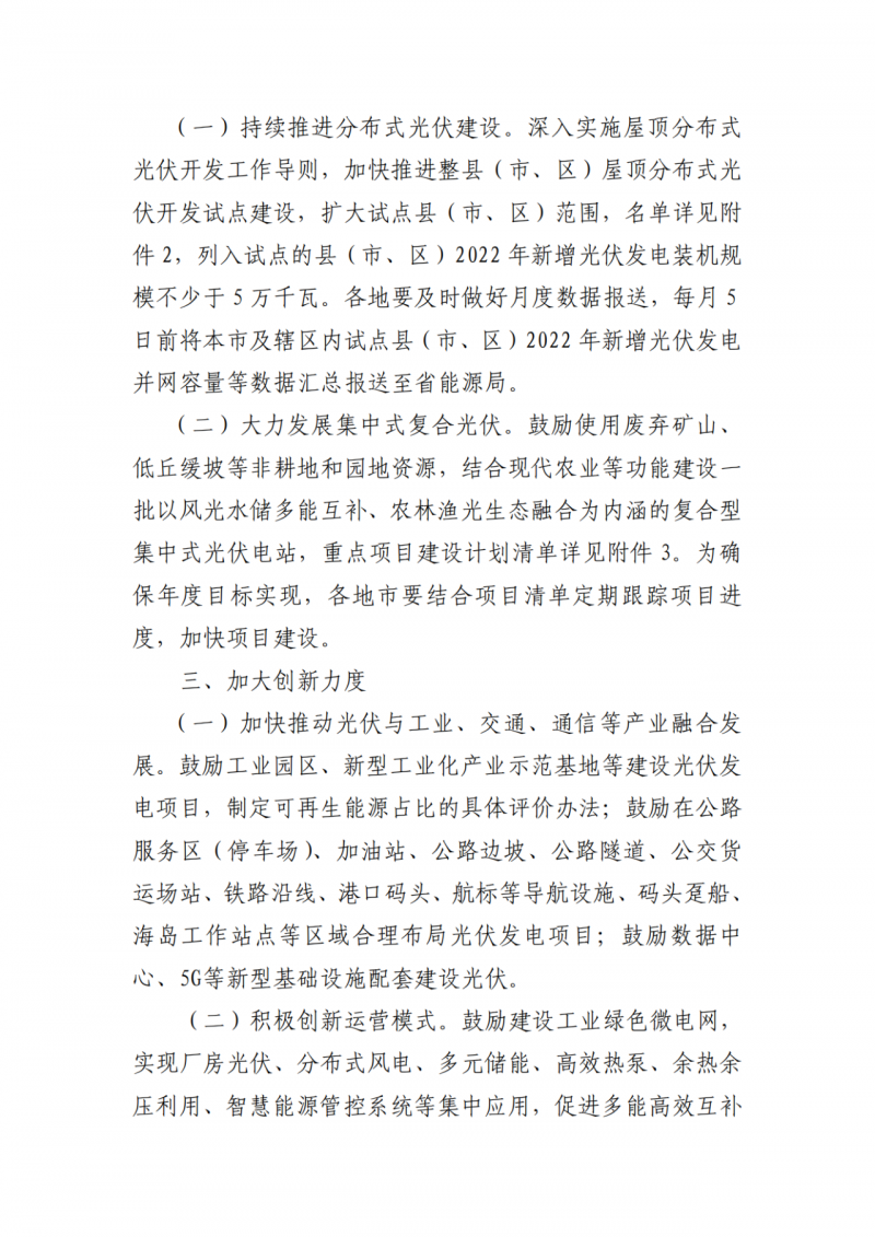 除此外,浙江省能源局要求持續(xù)加快分布式光伏建設(shè),并擴(kuò)大整縣(市、區(qū))屋頂分布式光伏開(kāi)發(fā)試點(diǎn)建設(shè)范圍,新增36個(gè)整縣試點(diǎn)名單,列入試點(diǎn)名單縣(市、區(qū))2022年光伏新增不得少于50MW,總規(guī)模為1.8GW。